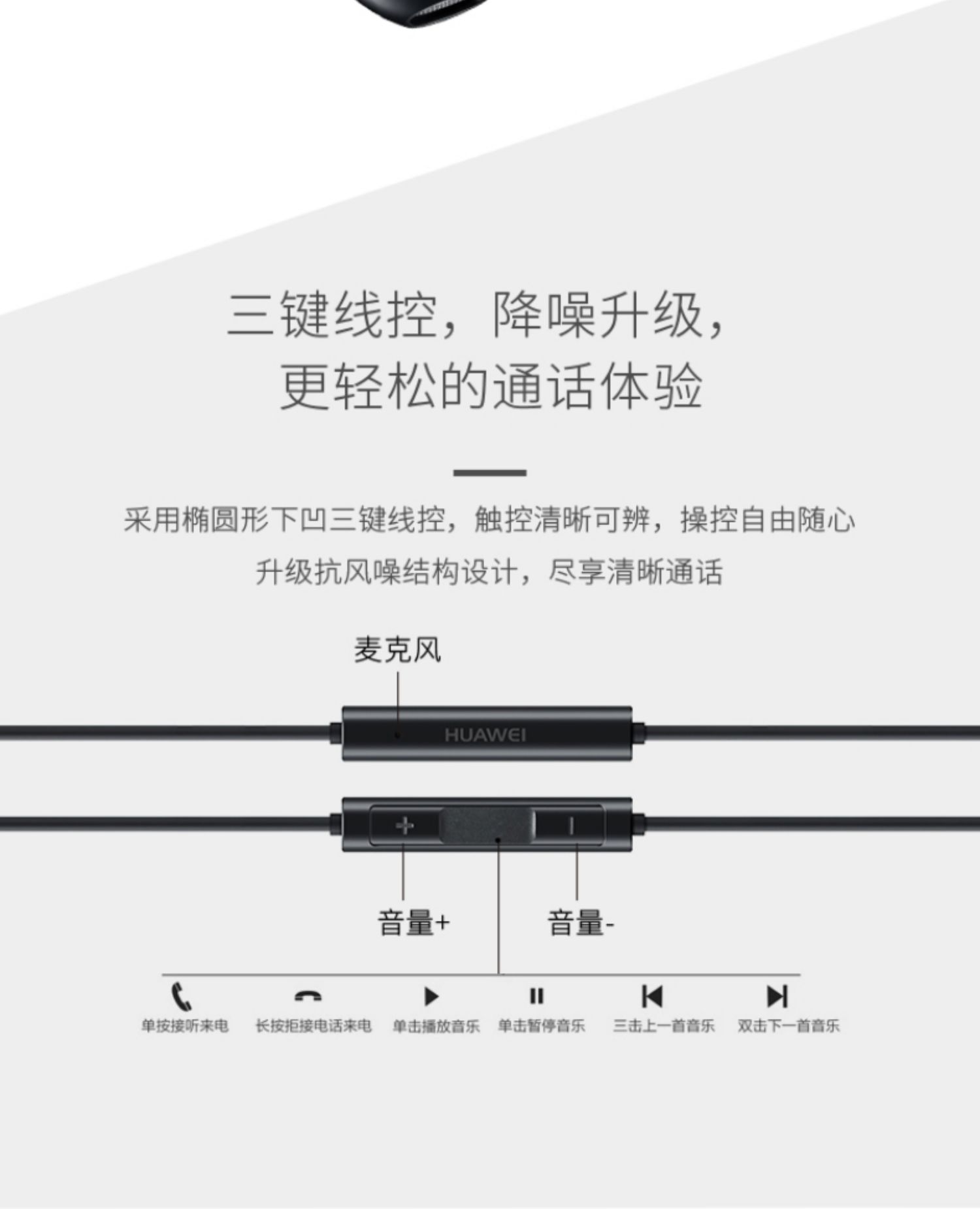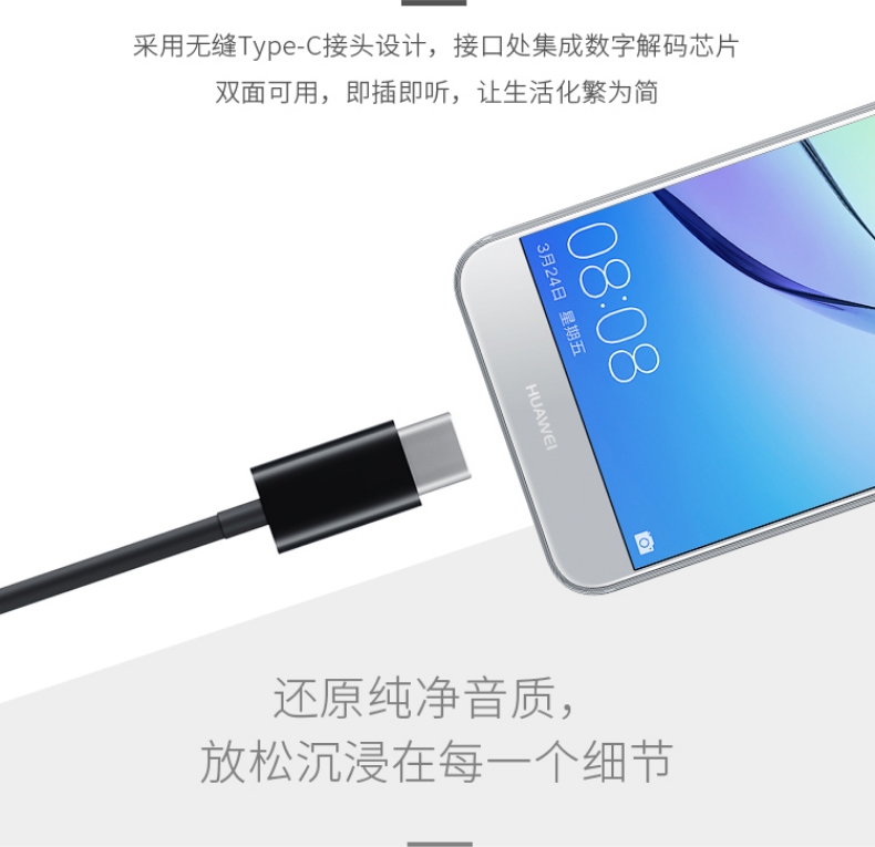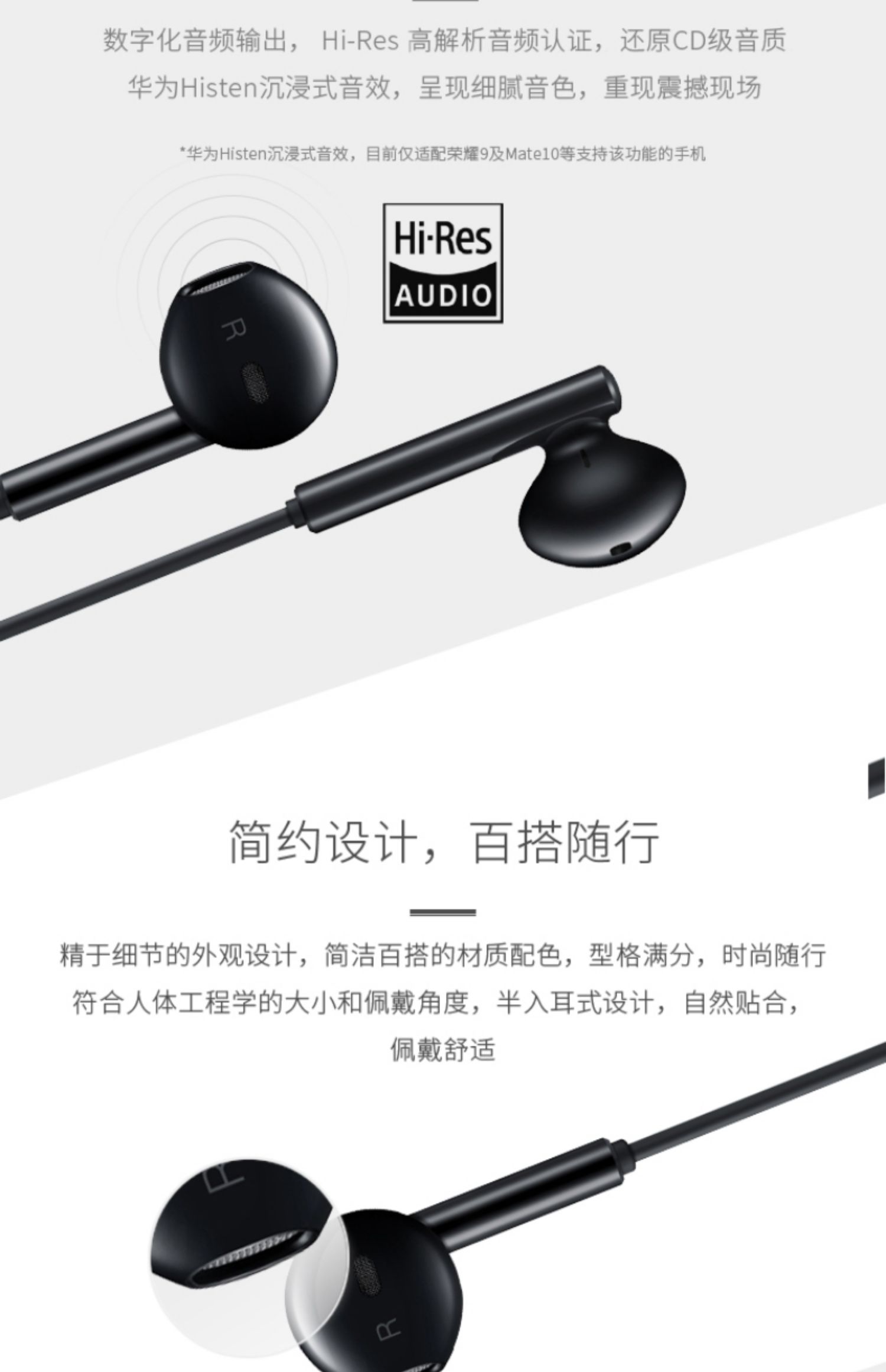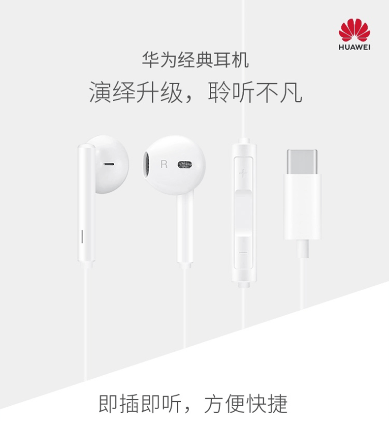 Huawei/华为经典耳机CM33 type-c接头适配华为p20耳机原装正品