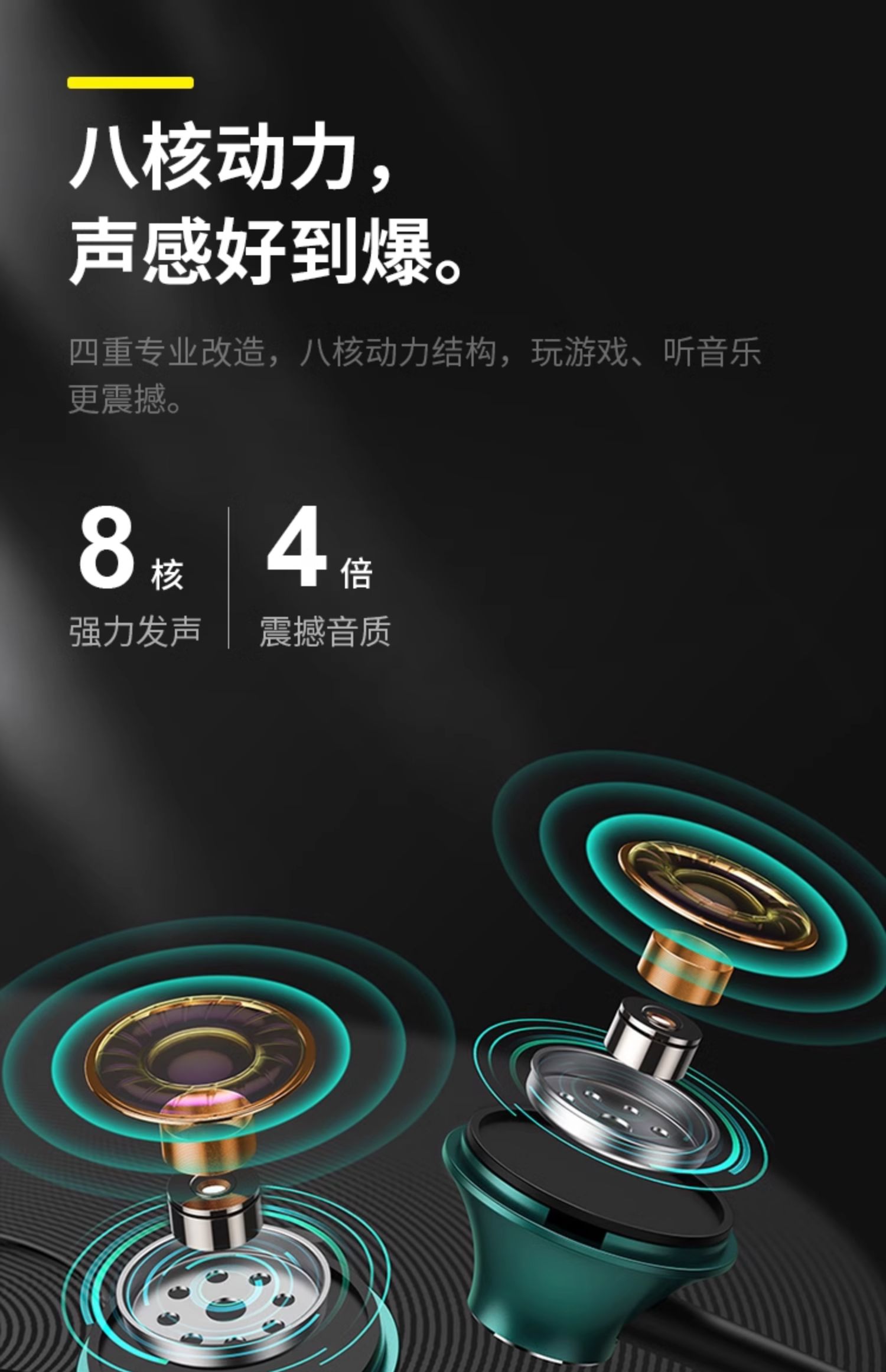 不入耳有线耳机高音质数字耳机typec台式电脑圆孔通用超长加长线