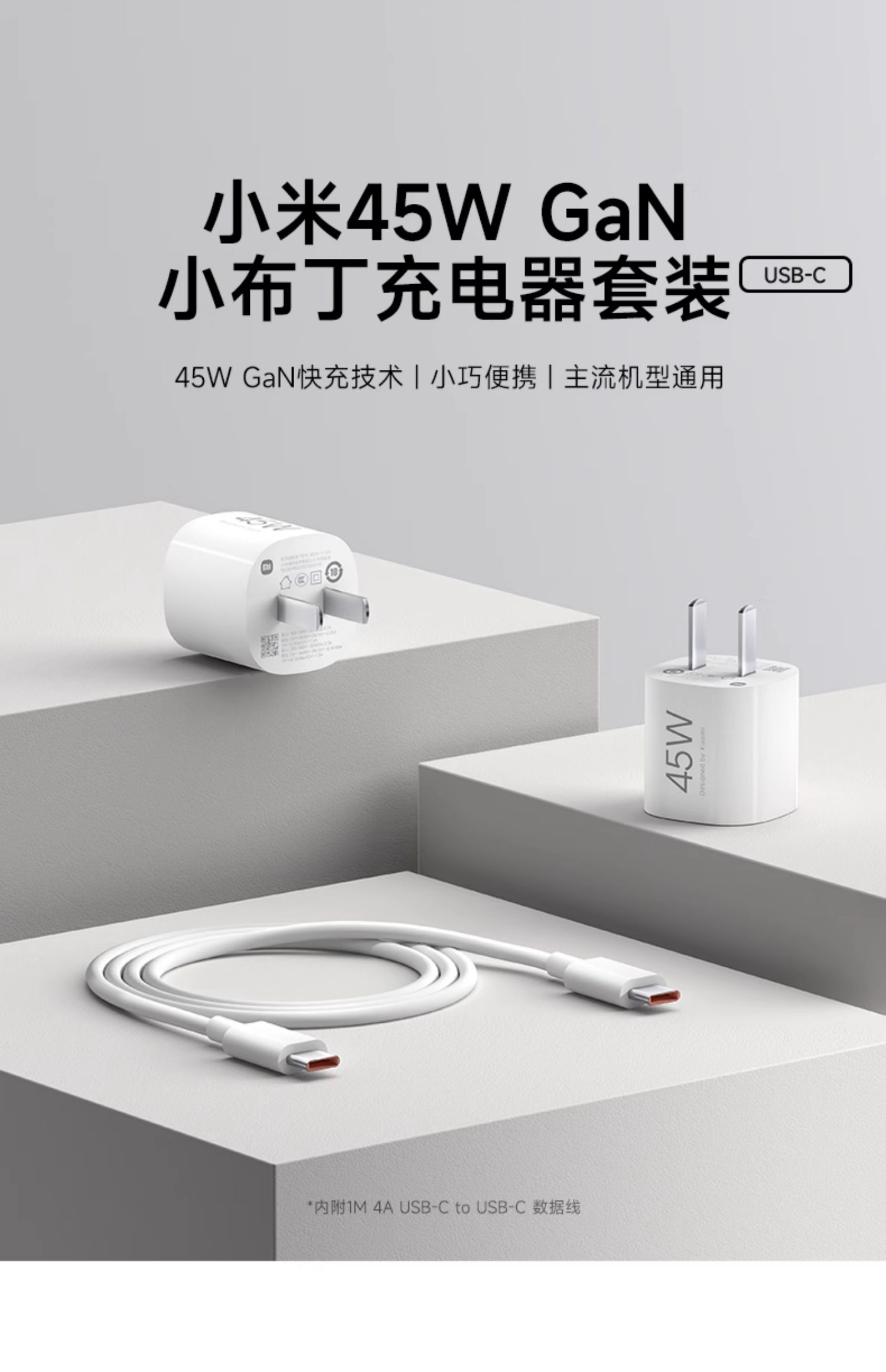 小米45WGaN小布丁充电器套装 (USB-C)小巧闪充氮化镓快充支持市面主流机型多协议