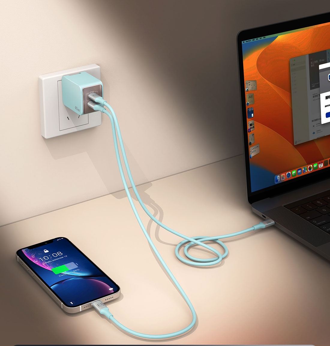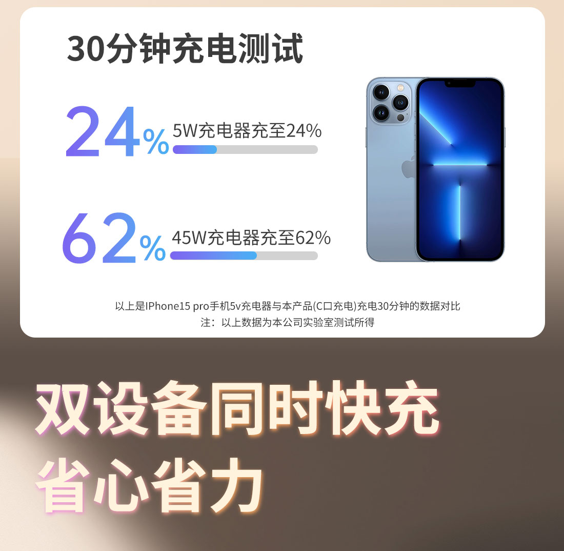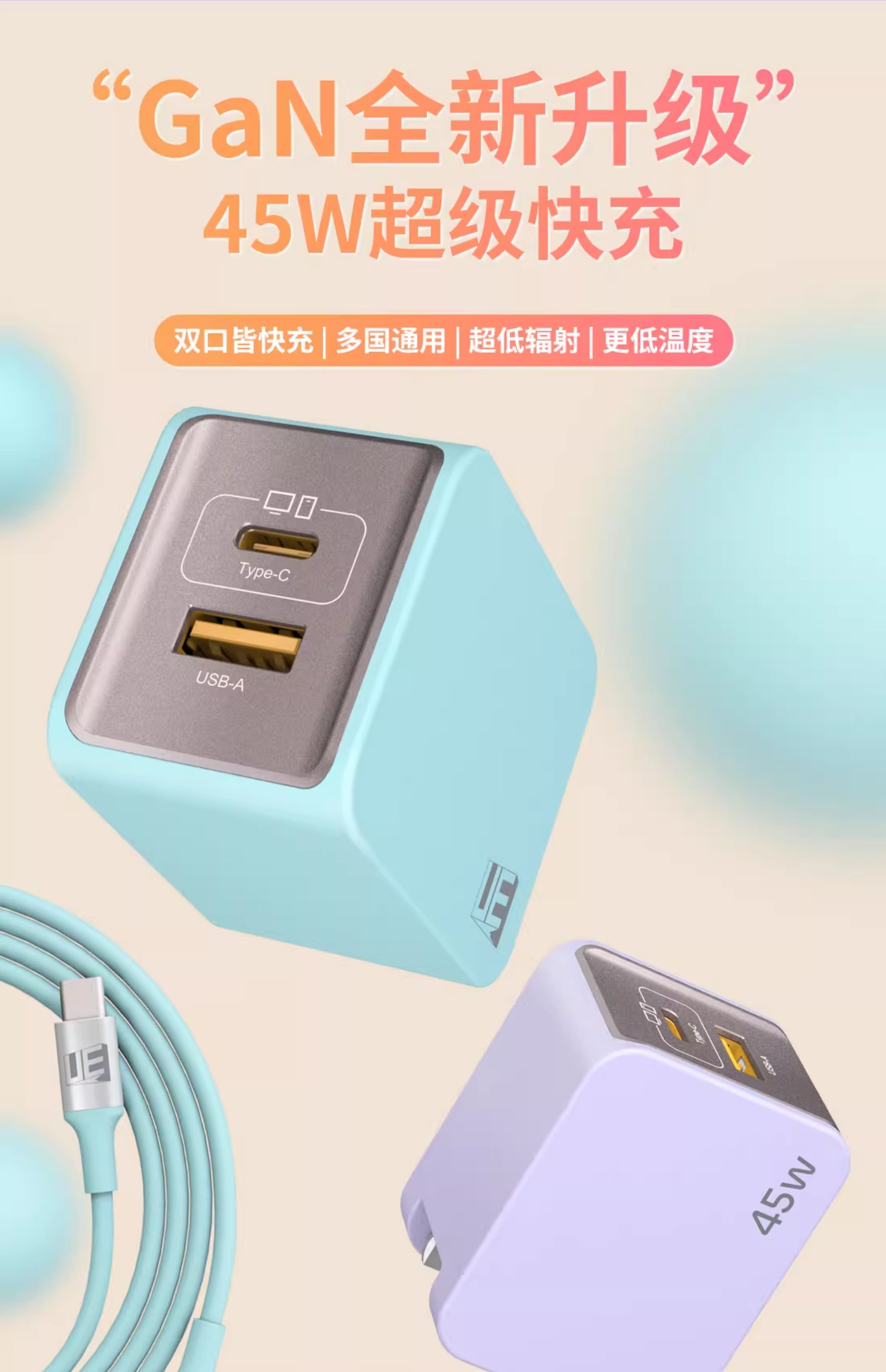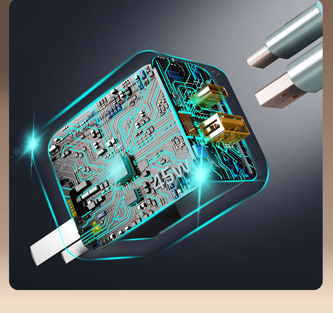 UE 充电器45W氮化镓PD快充头适用苹果华为荣耀iPhone16小米一加手机平板笔记本电脑Type-C/USB多孔接口