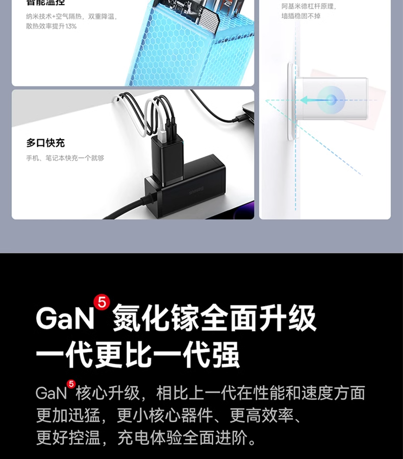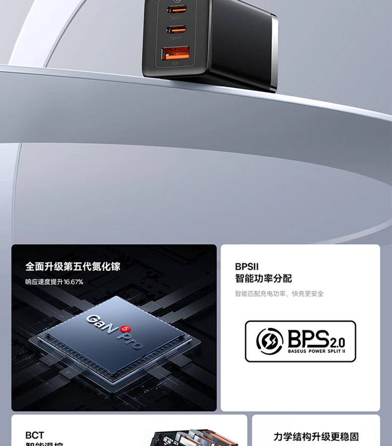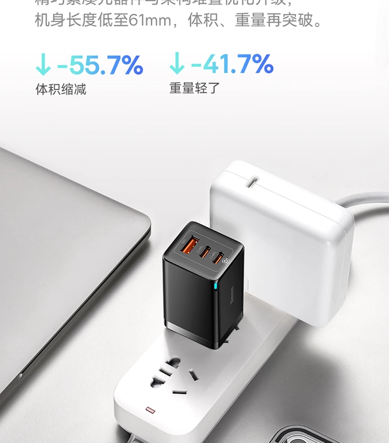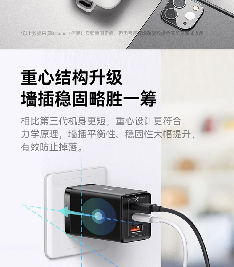 倍思65W氮化镓多口充电器适用苹果iPhone15/16充电头手机iPad平板笔记本电脑PD快充Typec插头