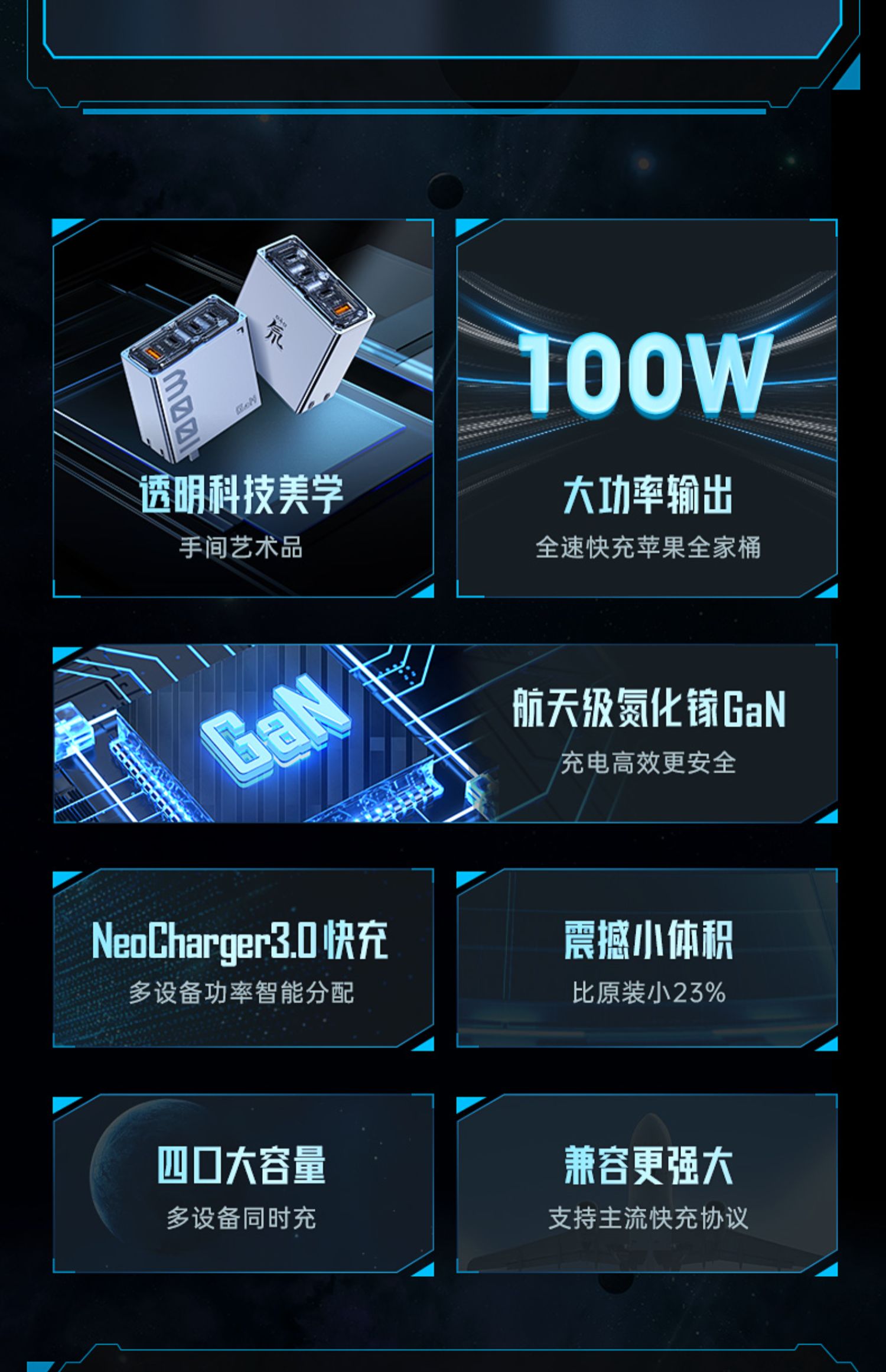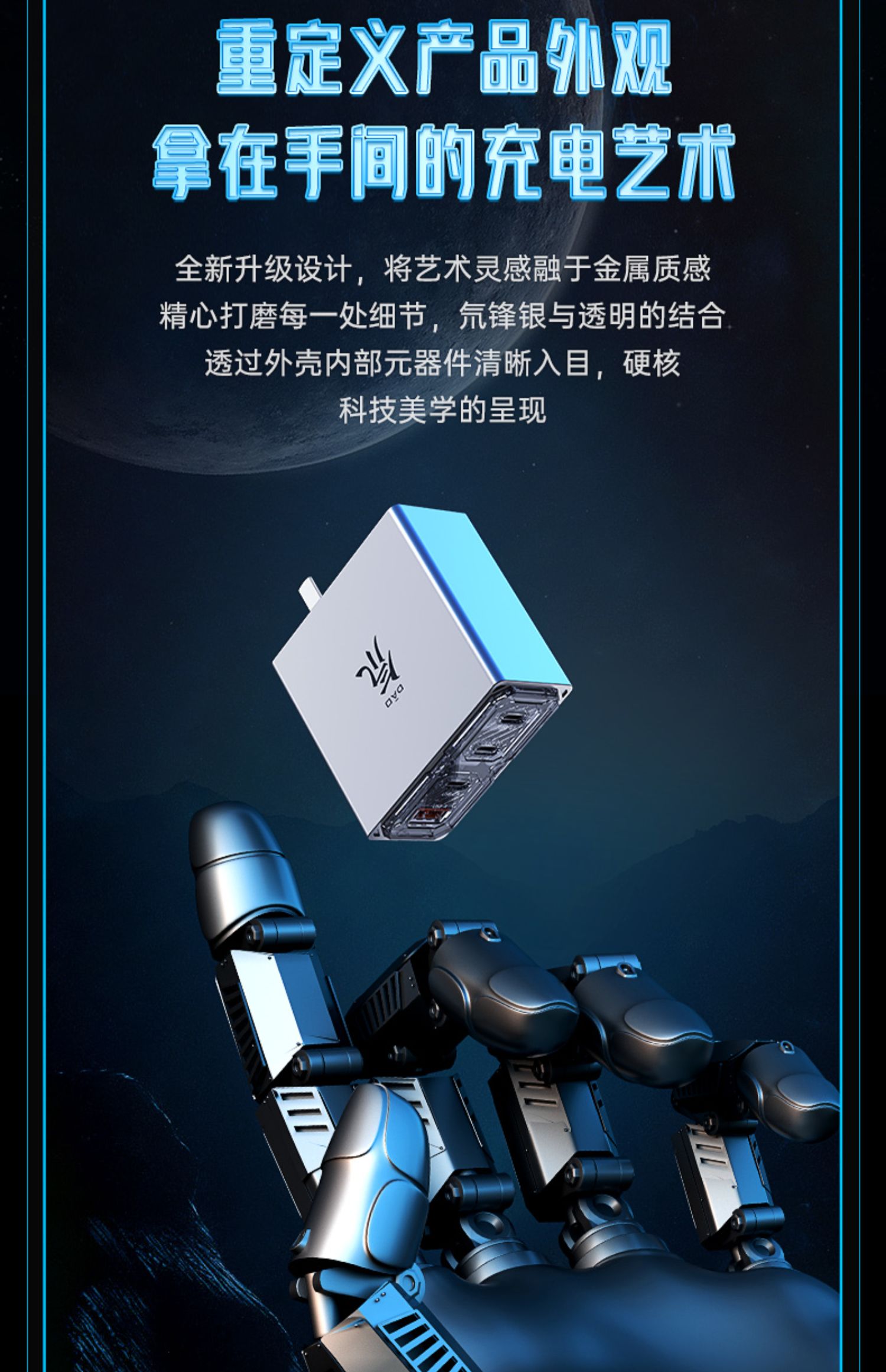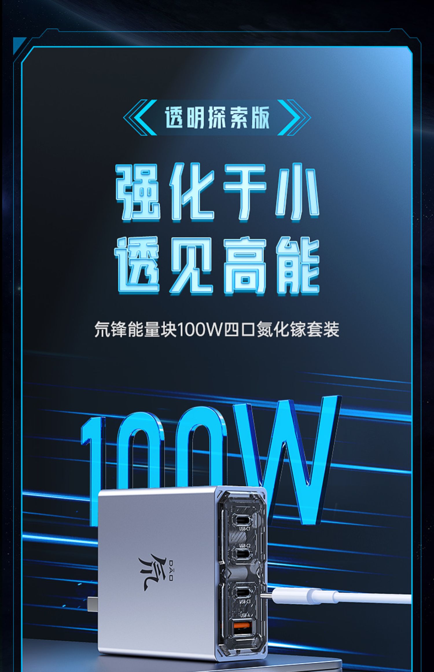 努比亚100W/65W氮化镓充电器氘锋透明多口折叠插头Gan手机快充140w/80W笔记本电脑适用华为苹果小米iPad安卓