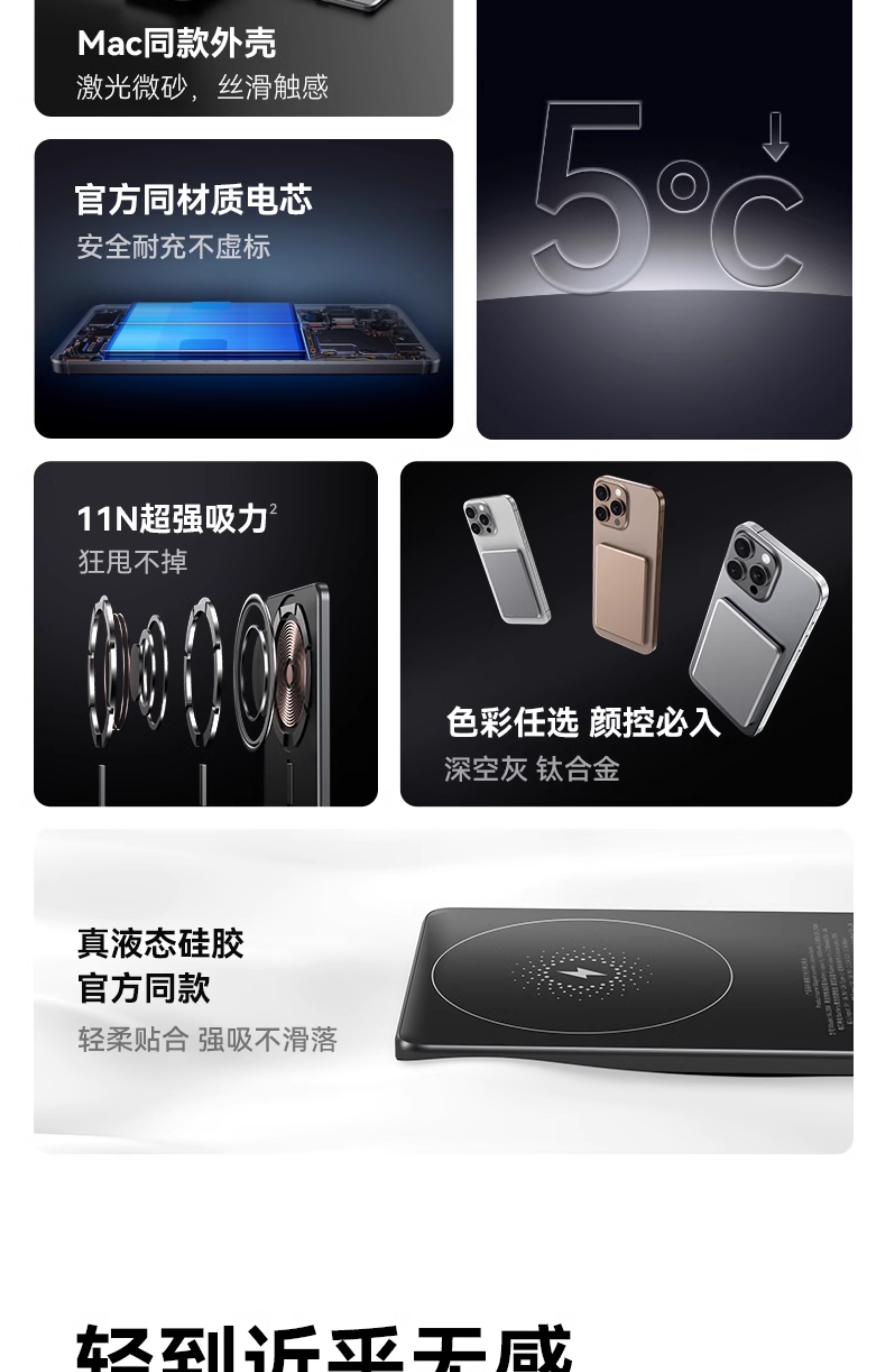 彩能正品快充magsaf磁吸无线充电宝超薄轻薄小巧便携移动电源适用于苹果