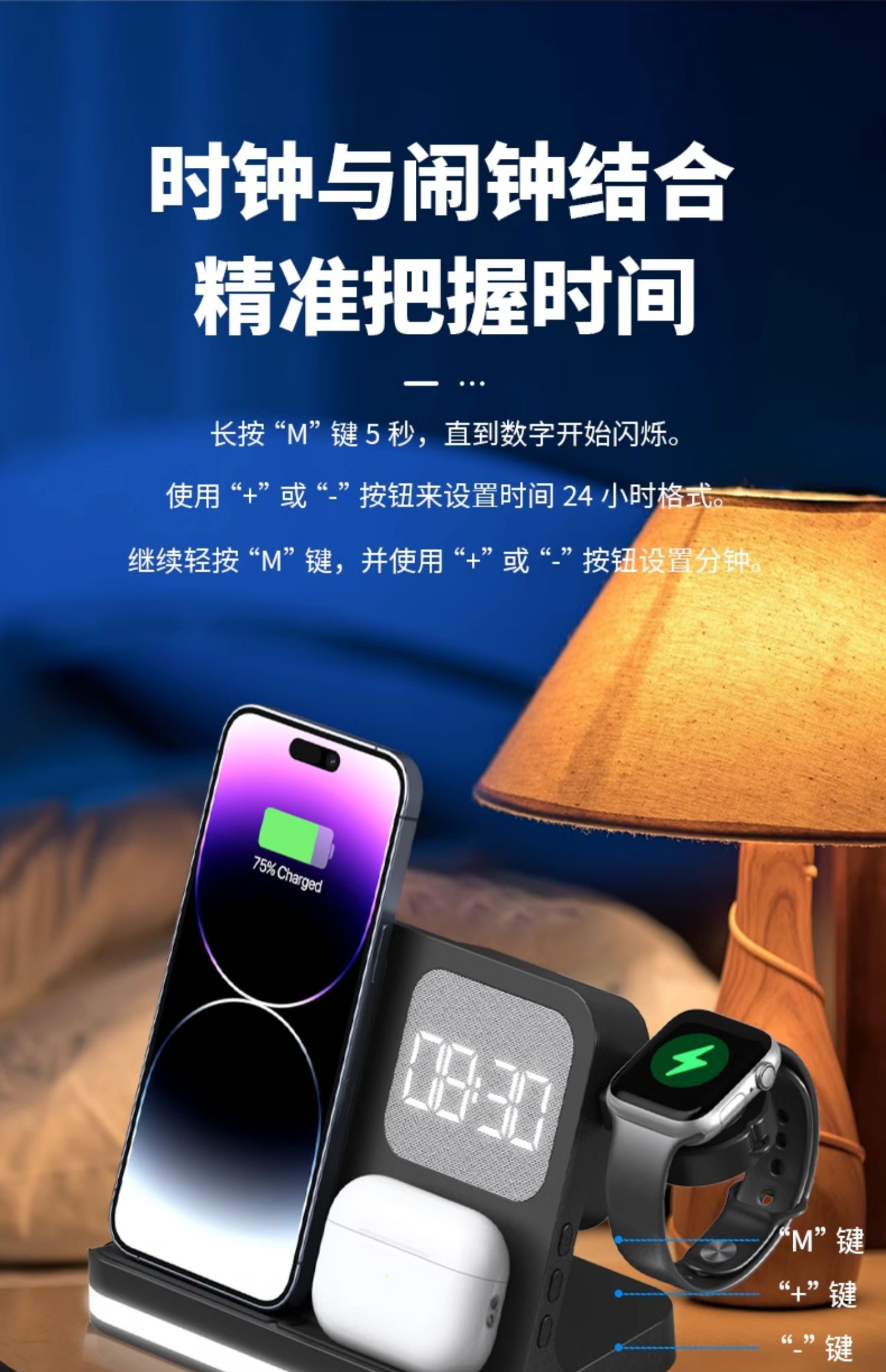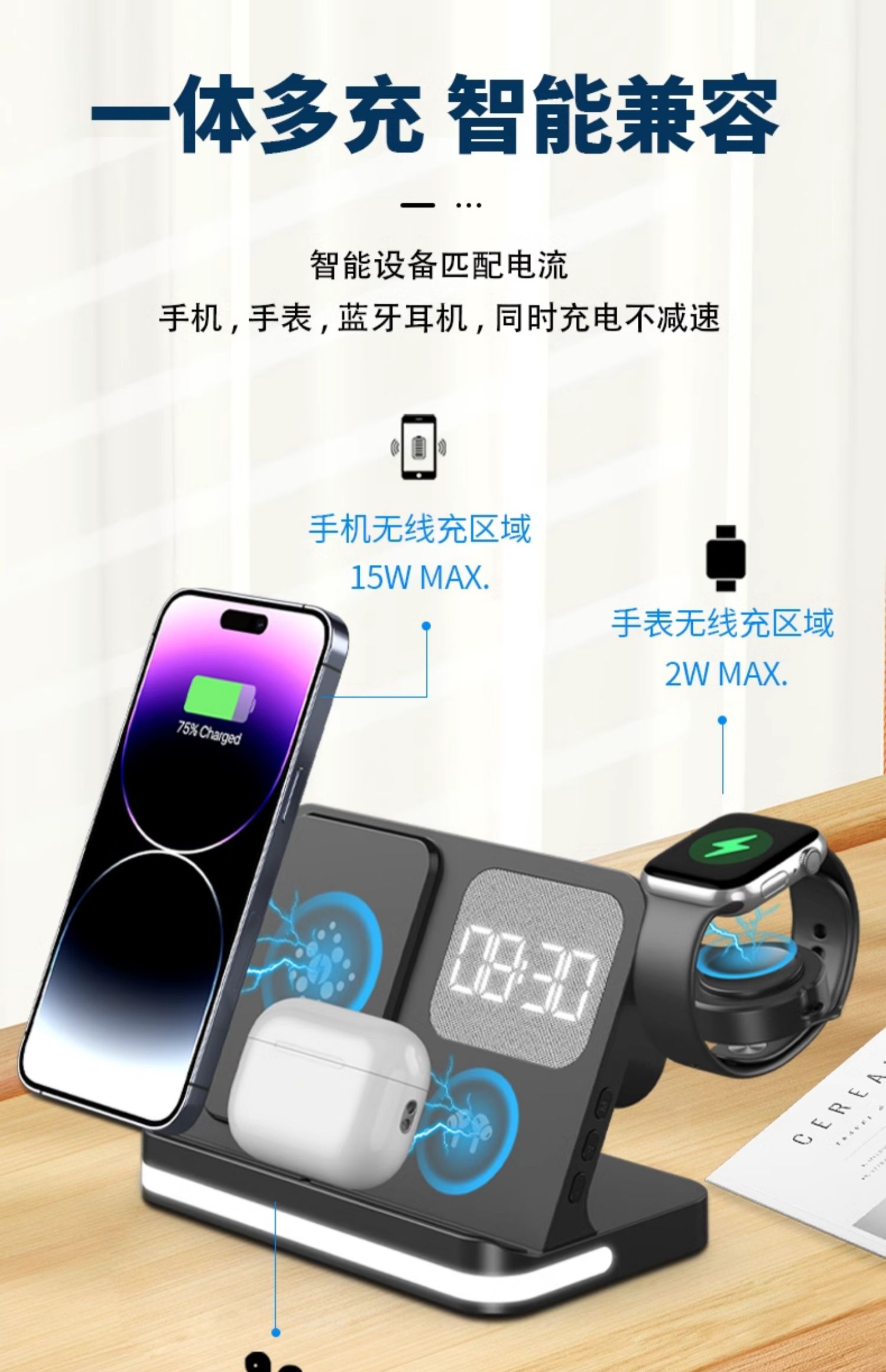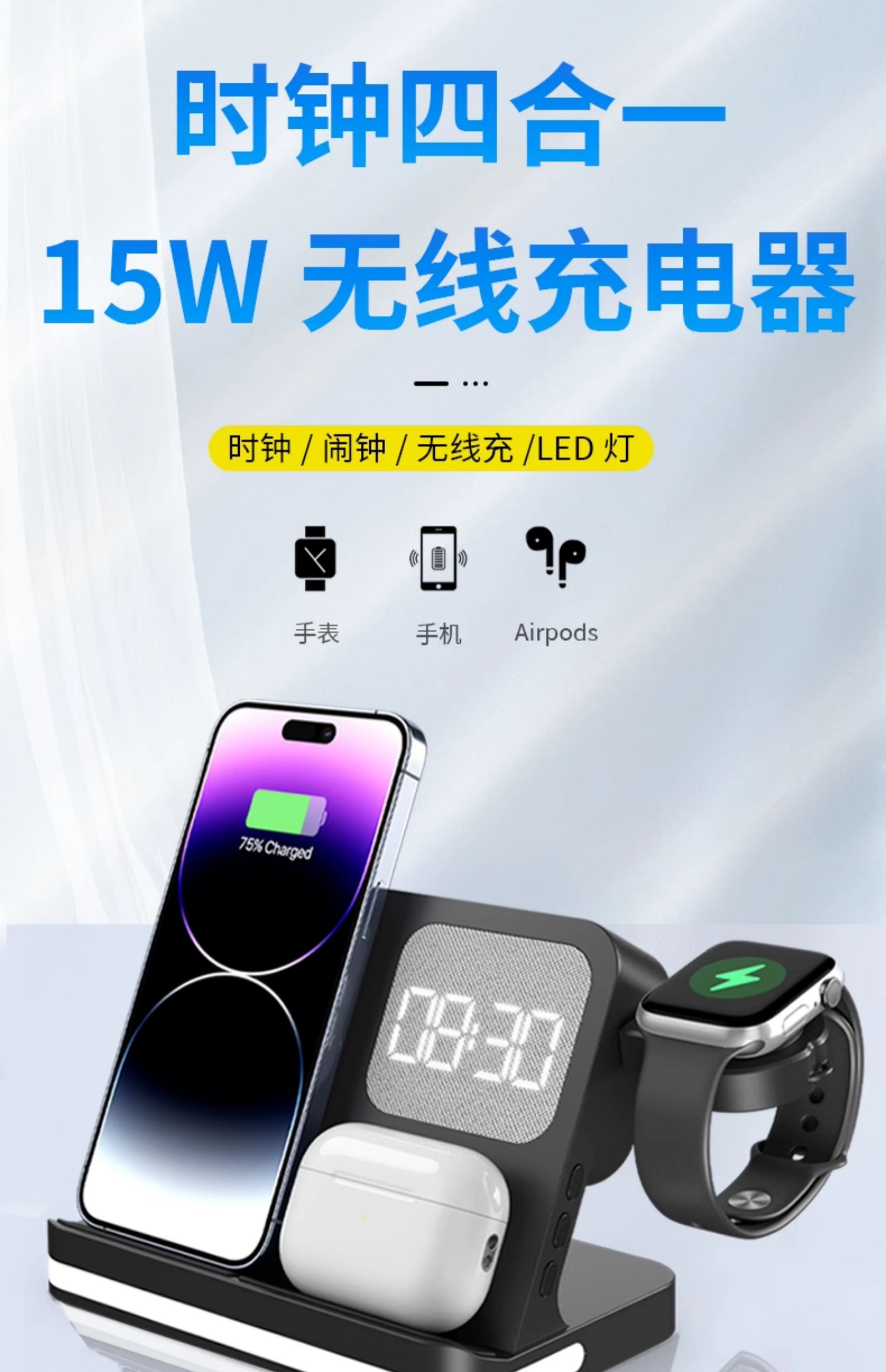 四合一无线充电器适用苹果applewatch10手表16pro手机iphone15快充时钟闹钟支架磁吸iwatch三合一底座耳机
