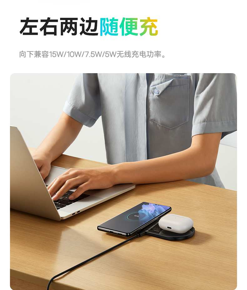 倍思无线充电器二合一适用苹果16Promax专用iphone15无限20W快充板14手机感应底座万能桌面华为三星车载通用