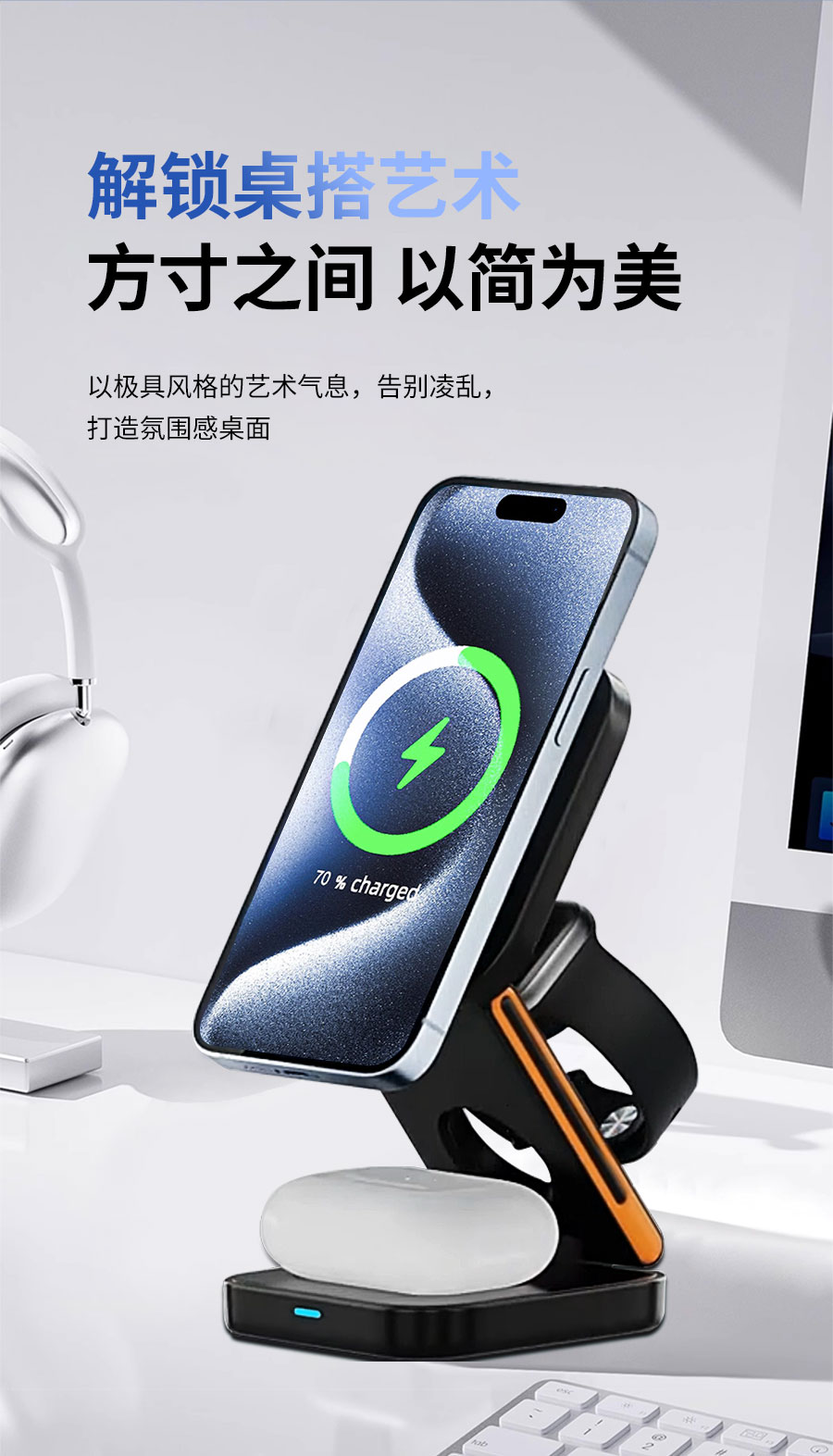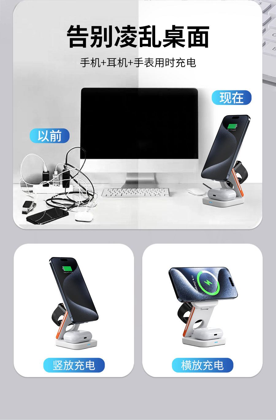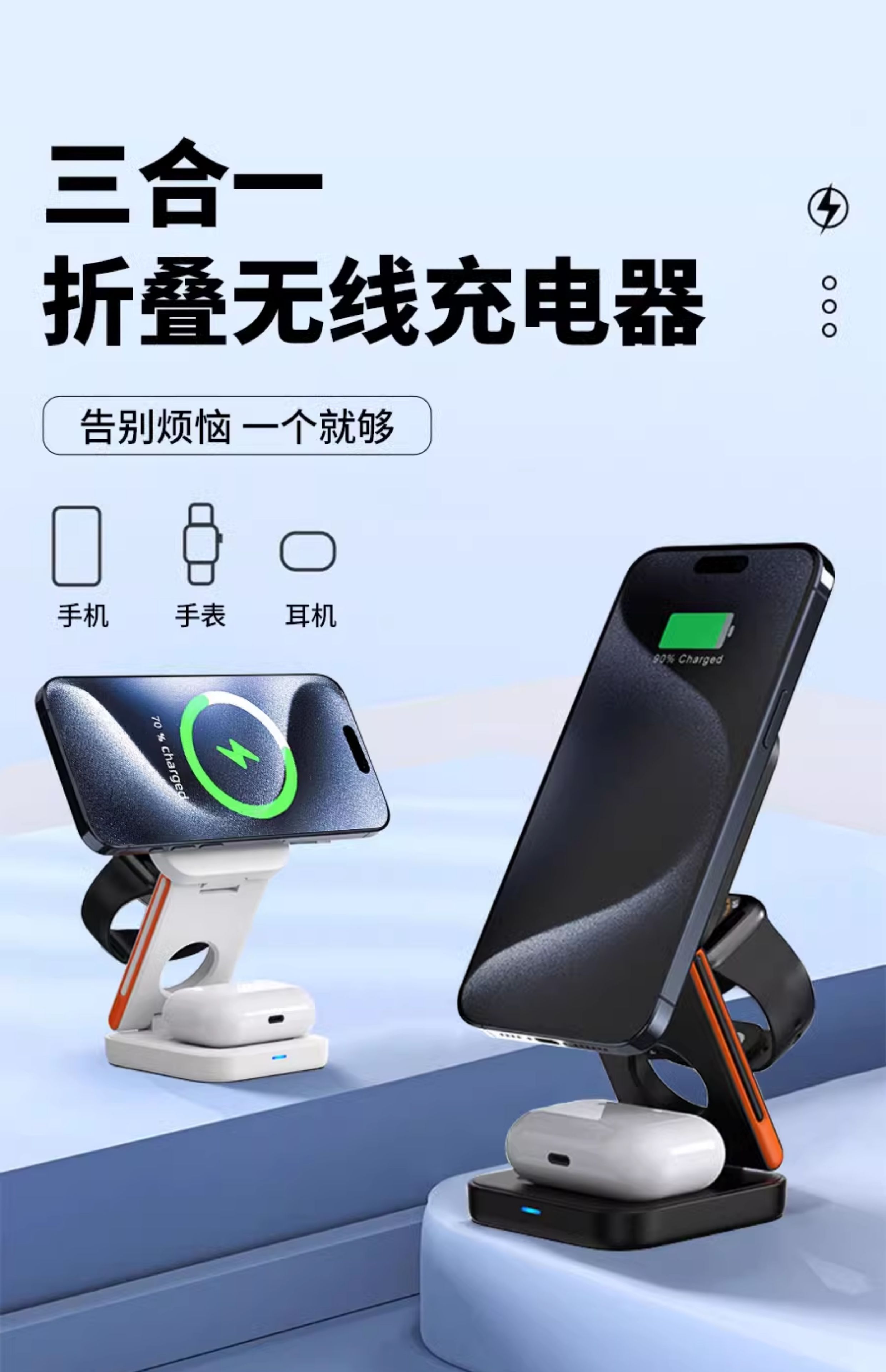 Magsafe无线充电底座器三合一支架多功能适用苹果iPhone16/15手机14promax快充iwatchs9手表Applewatch耳机13