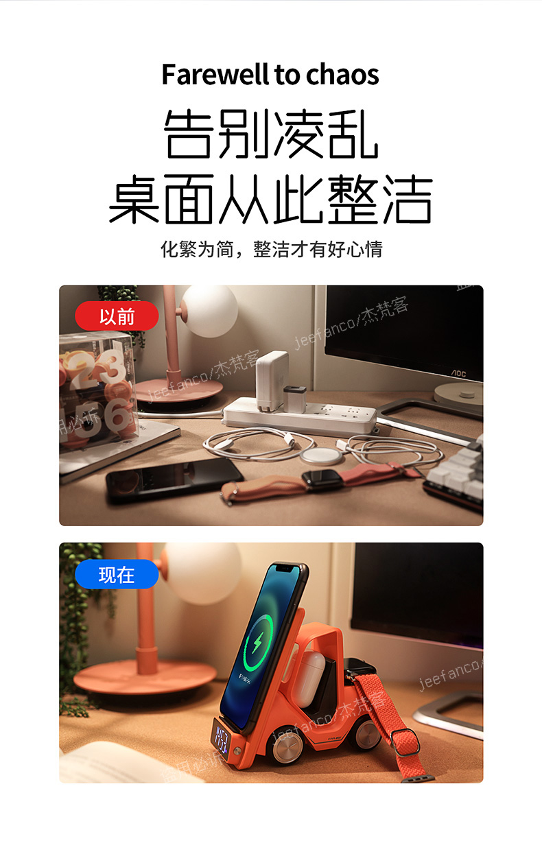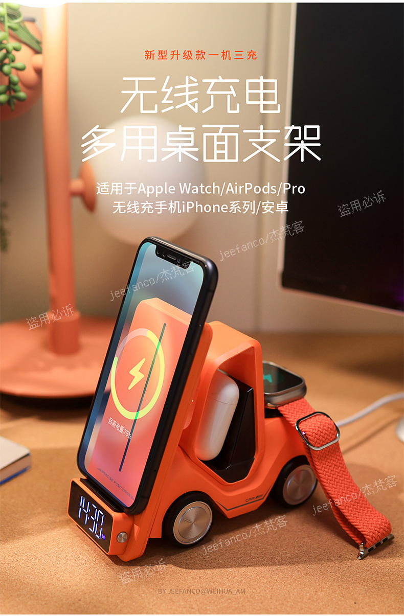 三合一无线充电器 桌面底座适用于华为小米苹果手表充电支架iphone16 applewatch iwatch耳机充电头Qi2多合一
