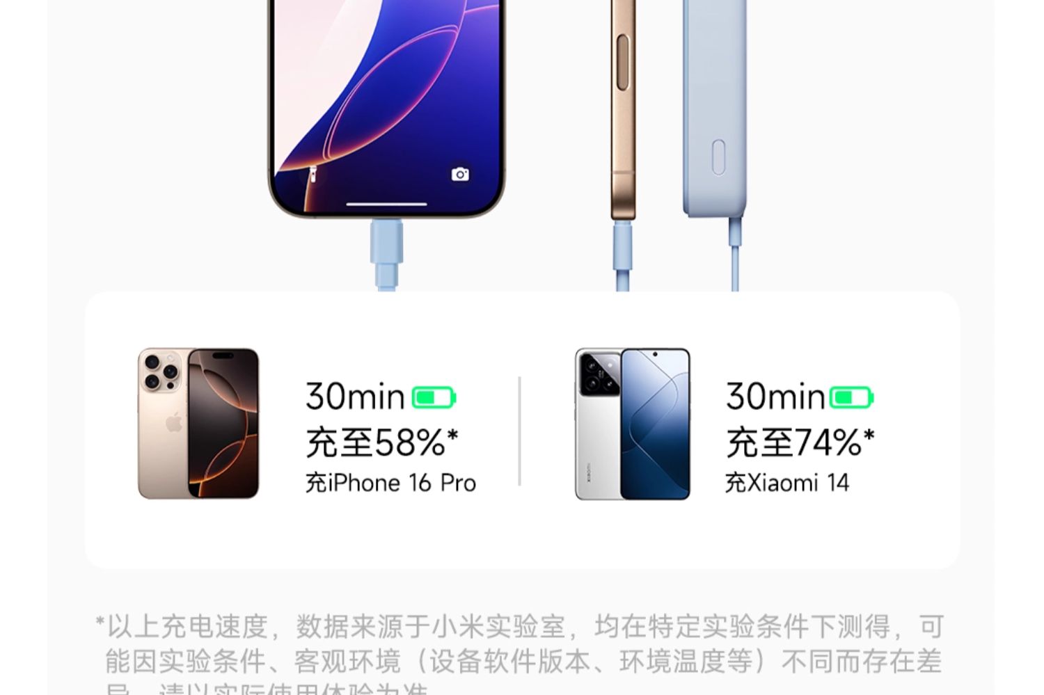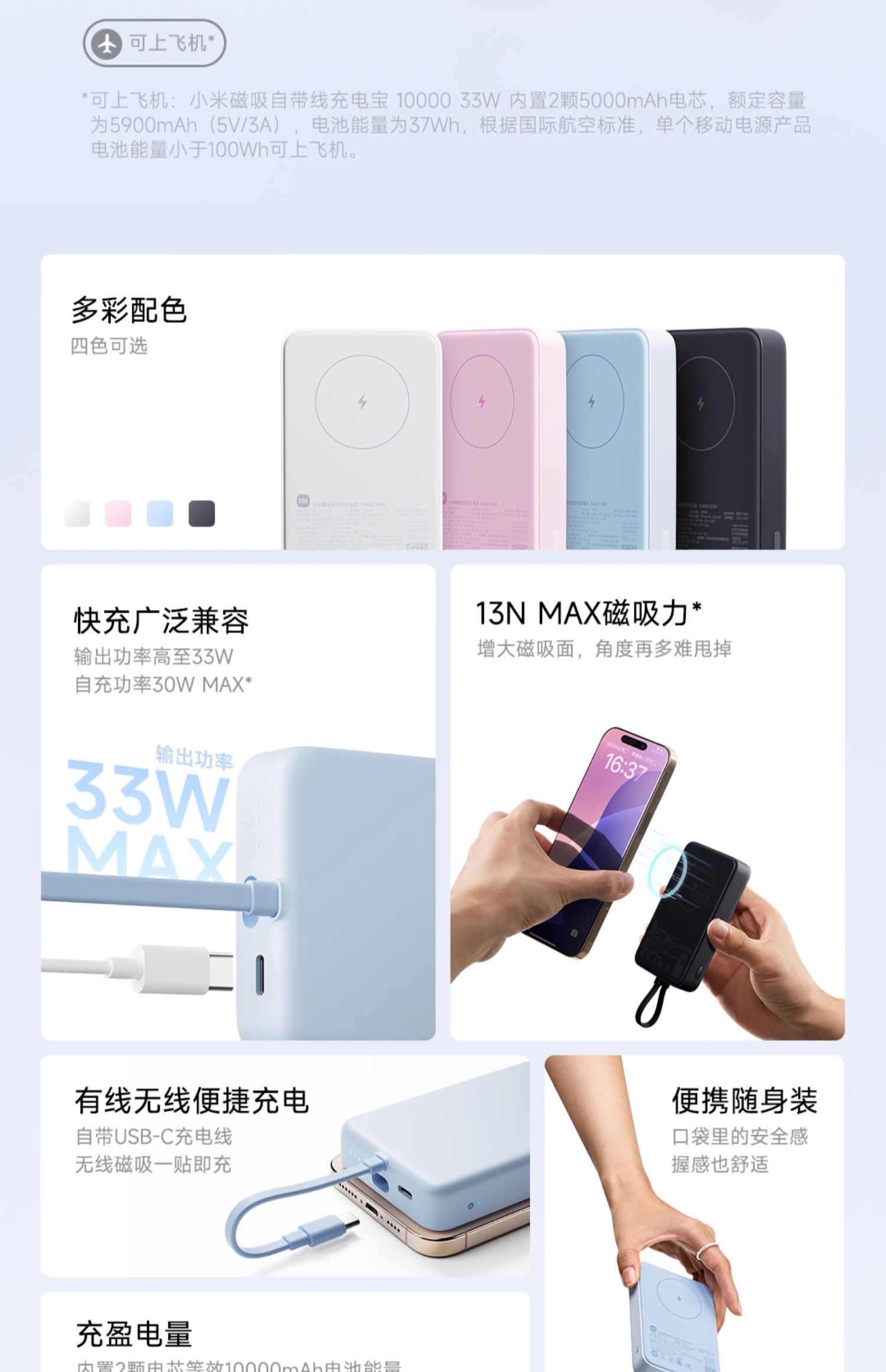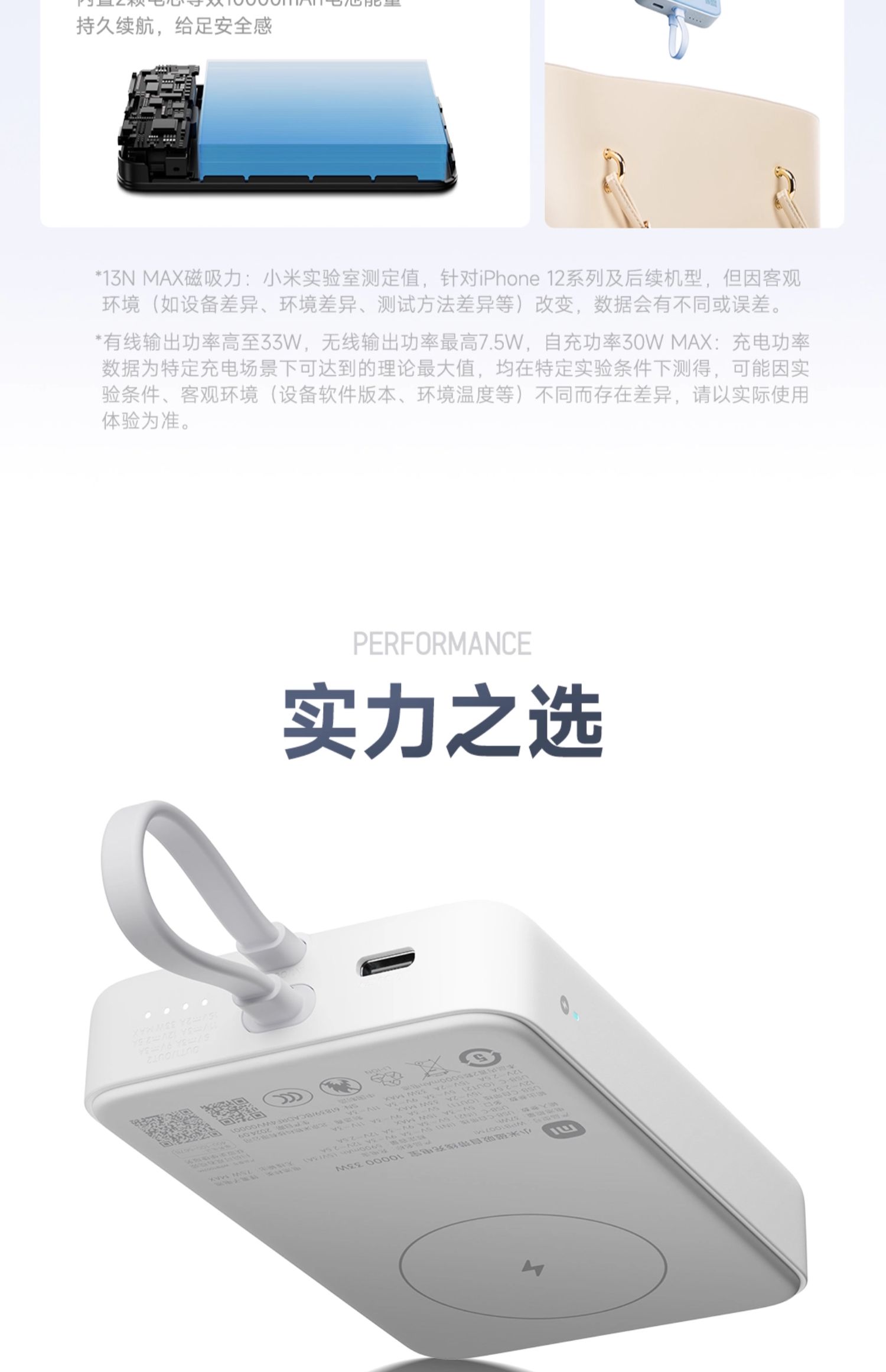 小米磁吸自带线充电宝10000 33W快充超薄迷你超大容量便携移动电源适用于华为小米苹果可上飞机