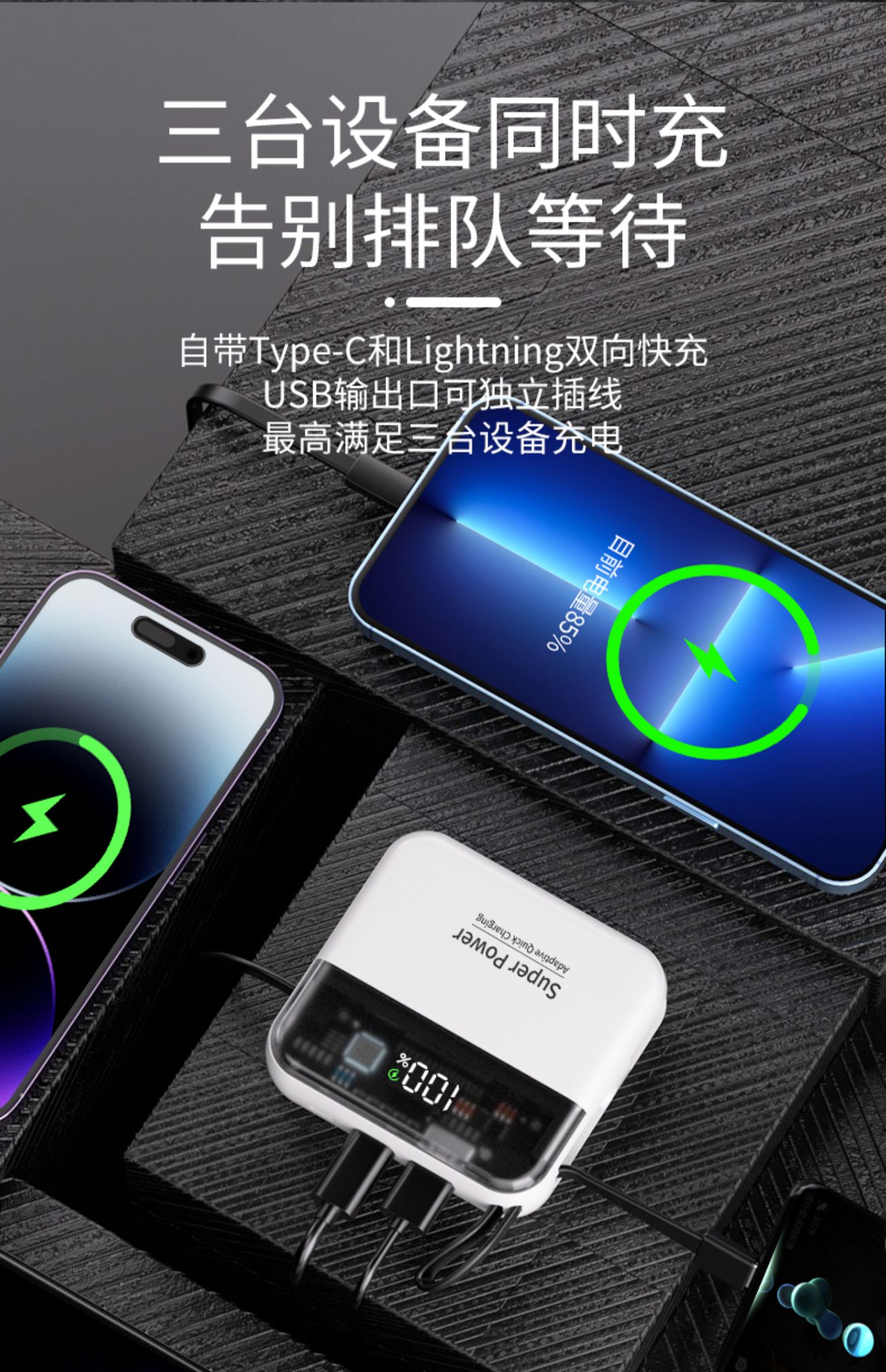 2025新款正品超级迷你大容量小巧超薄自带线快充20000充电宝飞机可携带定制logo便携毫安适用华为小米苹果16