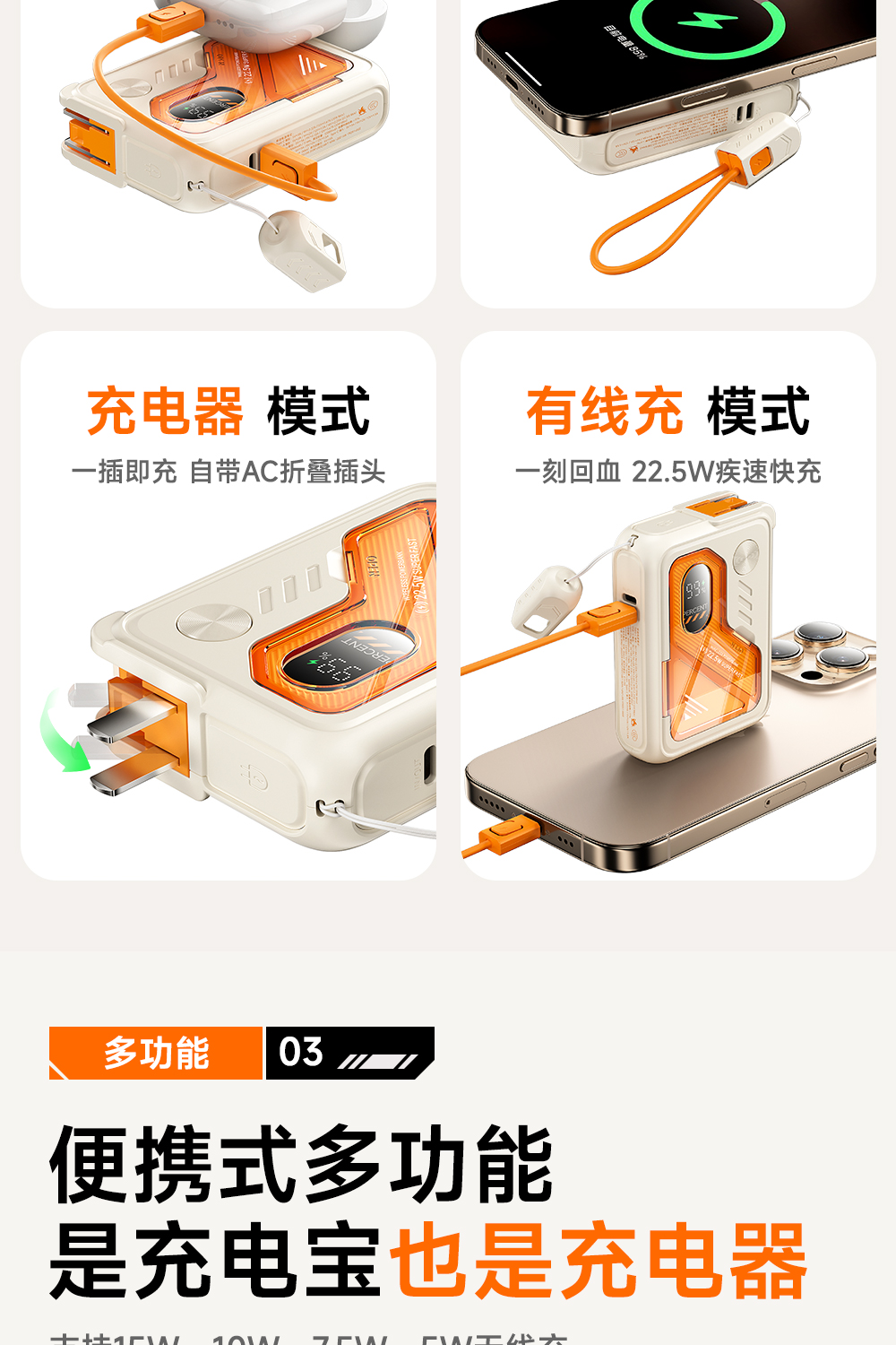 磁吸充电宝2025新款大容量20000毫安无线快充适用苹果手机便携移动电源飞机可携带