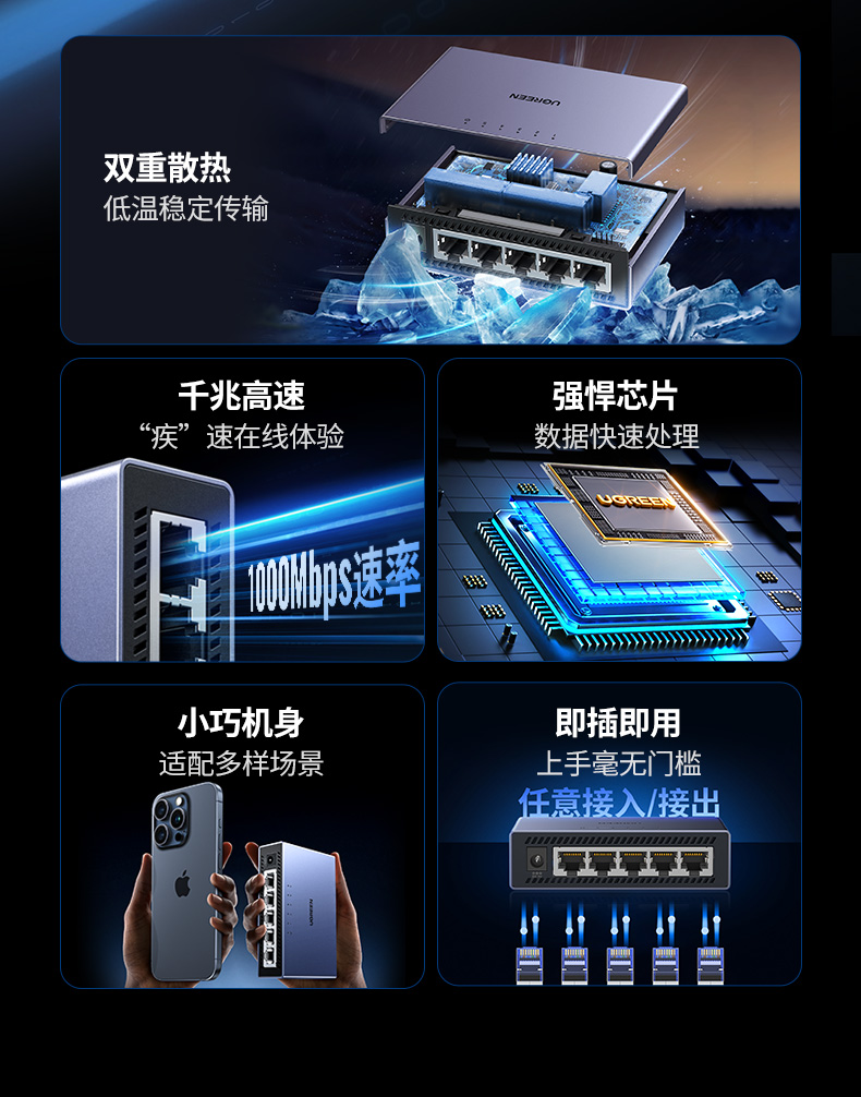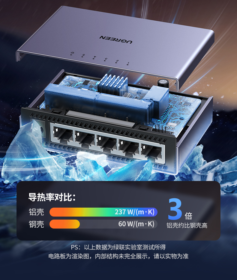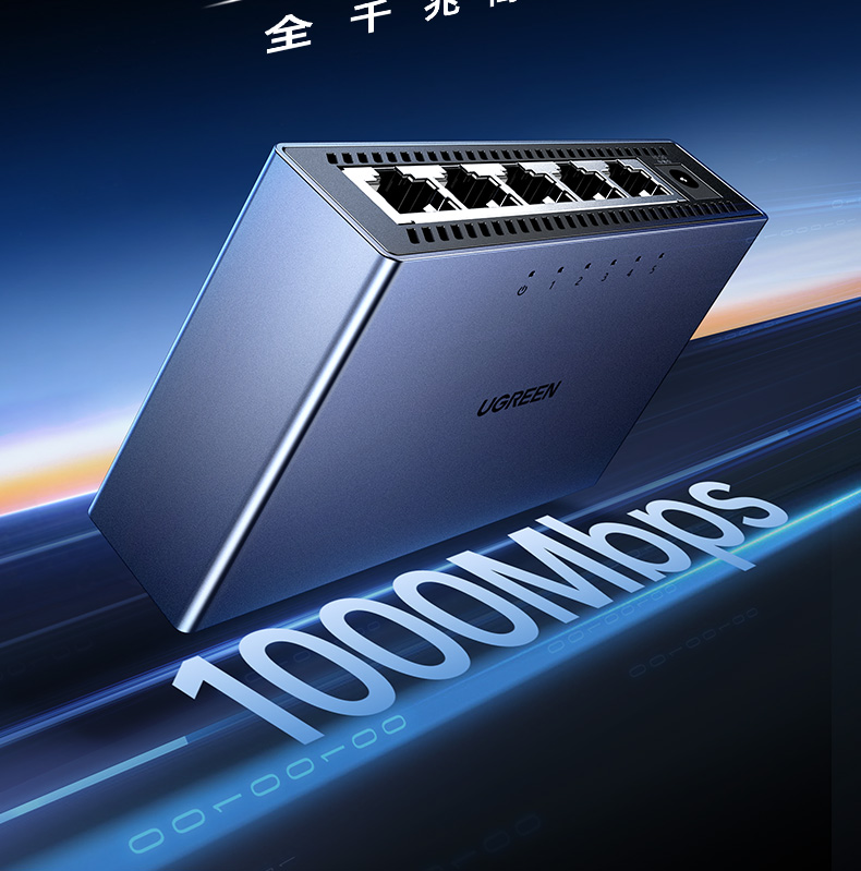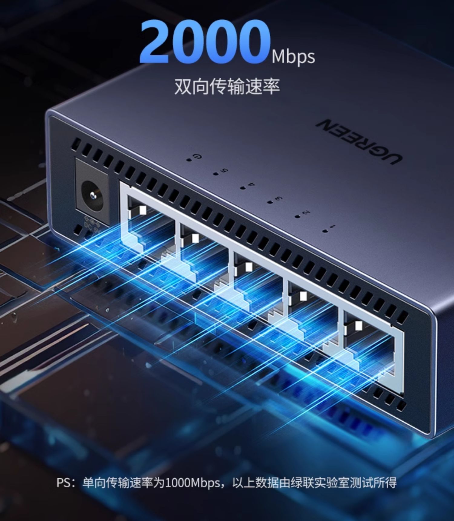 绿联交换机千兆5口8万兆2.5g网络分线器poe网线光猫路由交换器以太网转换多接口4扩展分流百兆家宽带监控专用