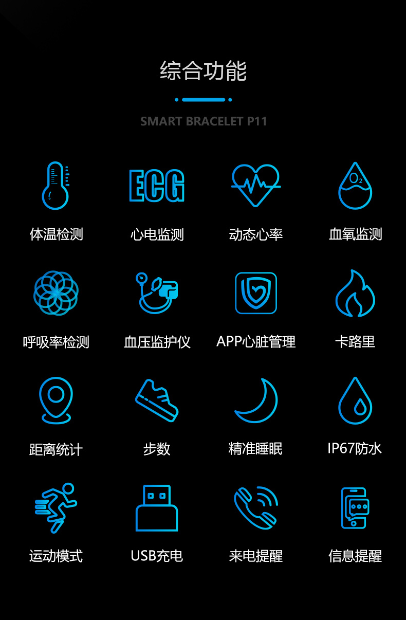 高精度无创测血糖血压风险评估心率智能手环血氧睡眠健康监测跑步心电图老年人运动手表